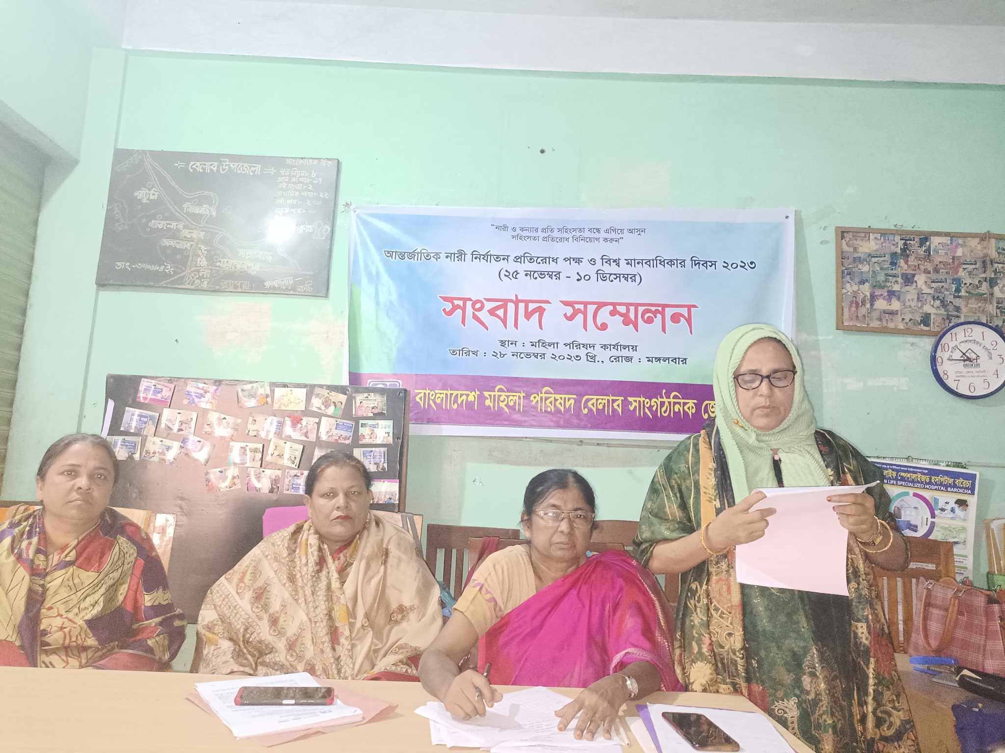 বেলাবতে বাংলাদেশ মহিলা পরিষদ বেলাব সাংগঠনিক জেলা শাখার সংবাদ সম্মেলন