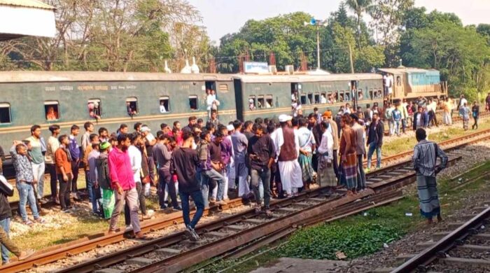 দিপ্ত দাস, নিজস্ব প্রতিবেদক: ১৭ ডিসেম্বর (মঙ্গলবার) দুপর ১২.৩০ মিনিটের দিকে জিনারদী রেলওয়ে স্টেশনে এ ঘটনাটি ঘটে। বকেয়া বেতন ও চাকরি স্থায়ীকরণের দাবিতে রাজধানীর কাওরানবাজারে রেলপথ অবরোধ করে রেলওয়ের অস্থায়ী